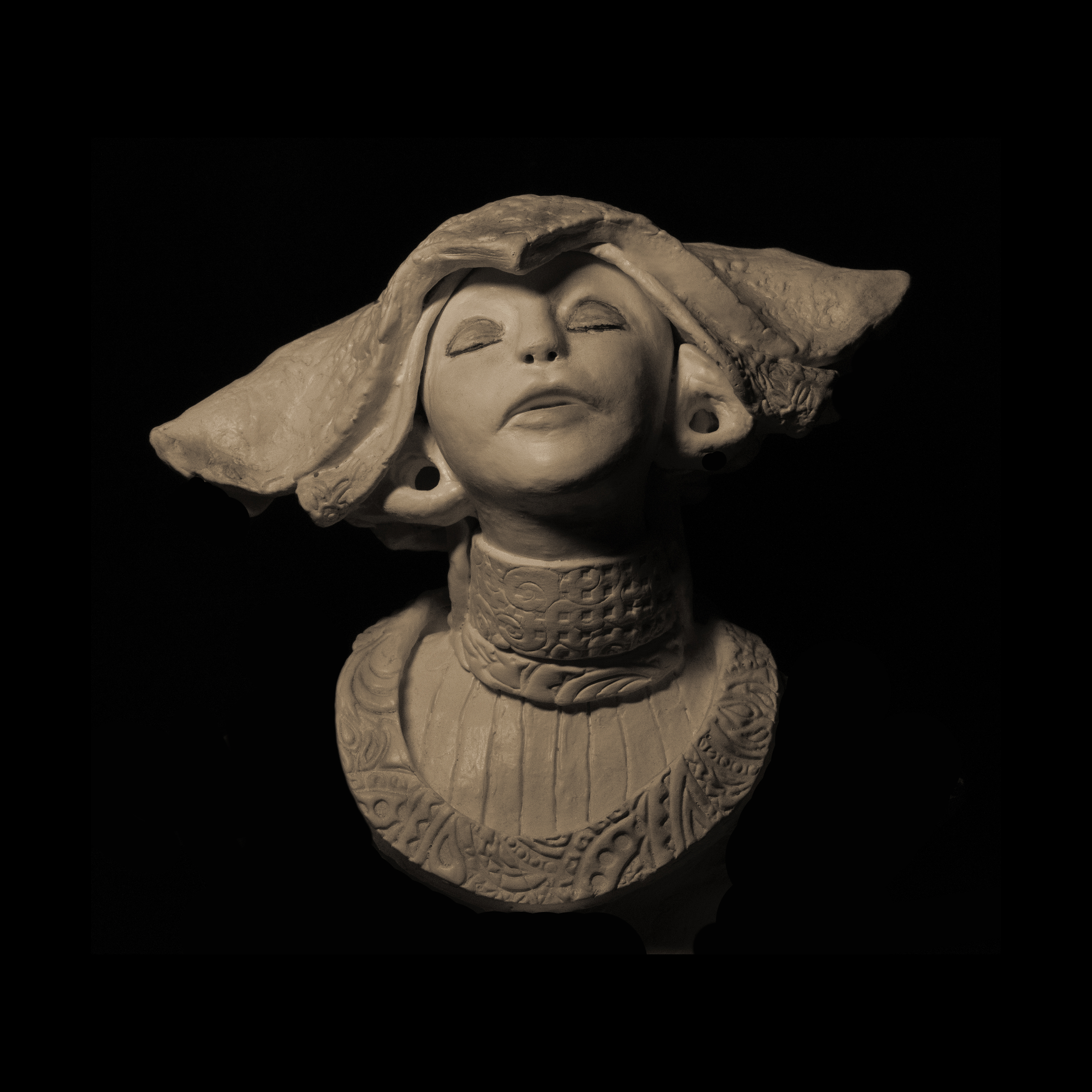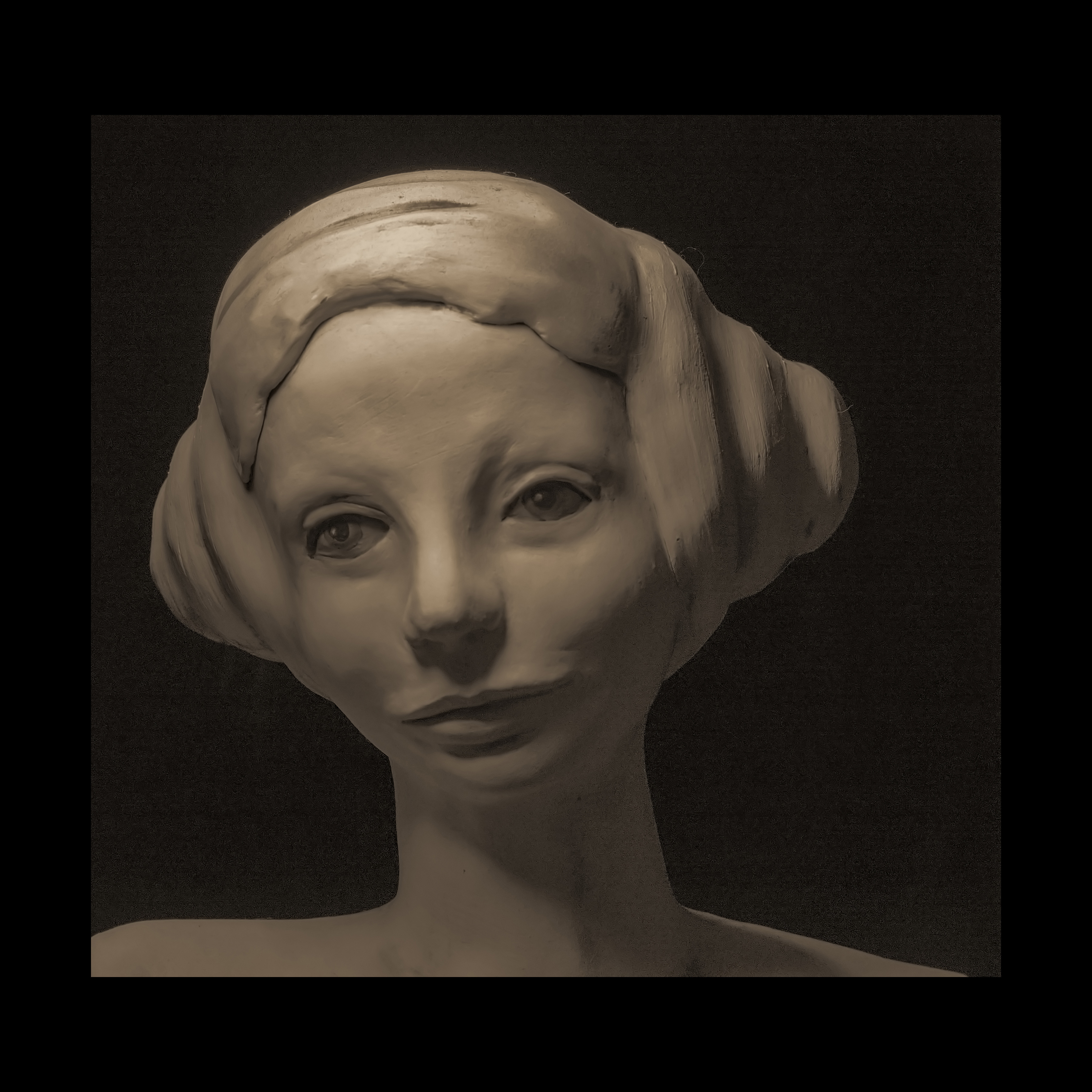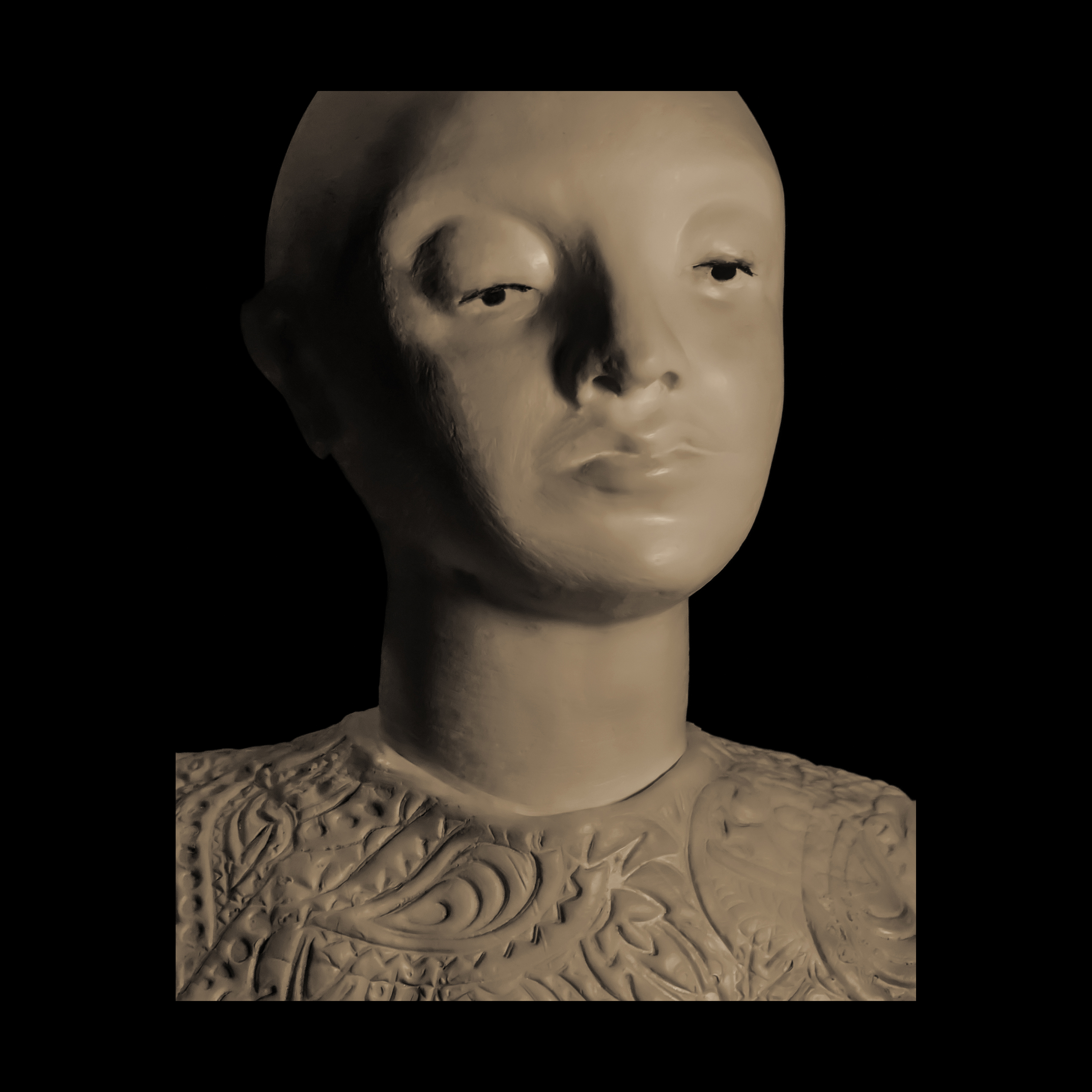 Susan Fiori crea elegantes esculturas emocionales. Aquí solo los rostros están bañados en sombras.