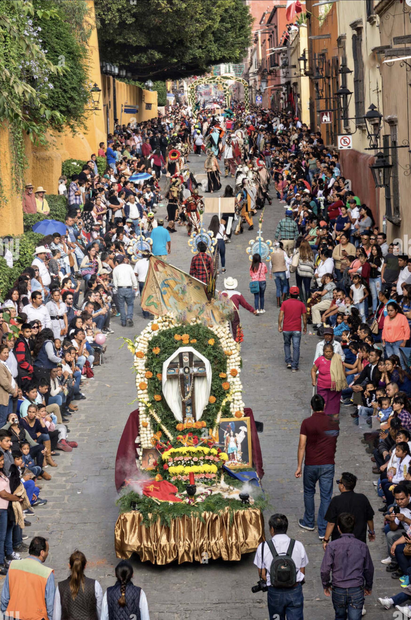 Xuchiles are funeral offerings in the form of flowers and cacti about two meters wide and the height of a story-and-a- half building. They are intrinsic to the Chichimeca (indigenous hunter gatherers) celebrations of the town’s namesake, St. Michael the Archangel’s, feast day in San Miguel de Allende.
